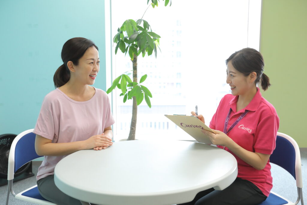 お客様の目標に対する進捗やその日の体調に合わせて、会話をしながらサポートします。